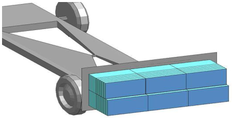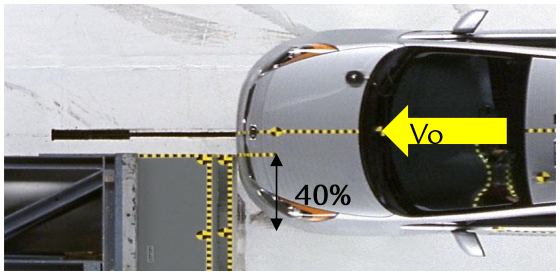The traditional frontal crash test is performed by a real car, that can be a prototype or pre-series model, connected to a rail that tows the car reaching 56 km/h toward a fixed deformable barrier. The test is conducted using a dummie that represent a 50% percentile of the population and a barrier with an offset in the frontal area of 40%.