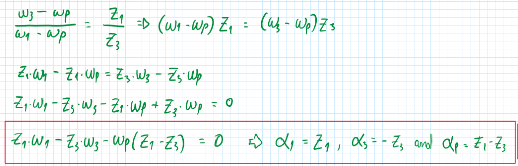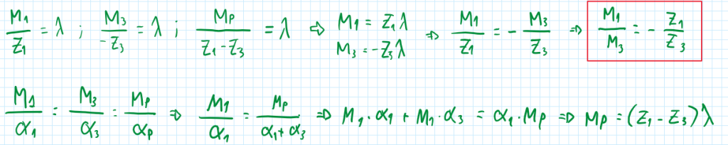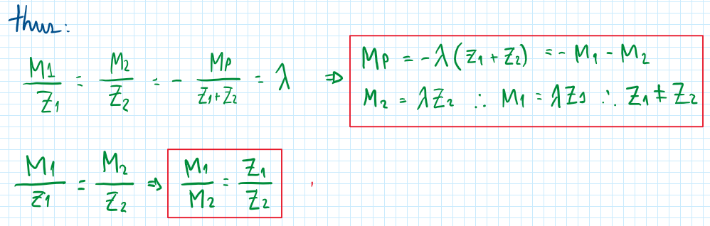 On the equations above, Lambda is a multiplication factor. With all these relations it is possible to assume that the moment on axles one and two are the same. Hence, the factors A1 and A2 are also equal so we can call them A12. This is a mathematical approach which obeys the pure rolling conditions. Thus: