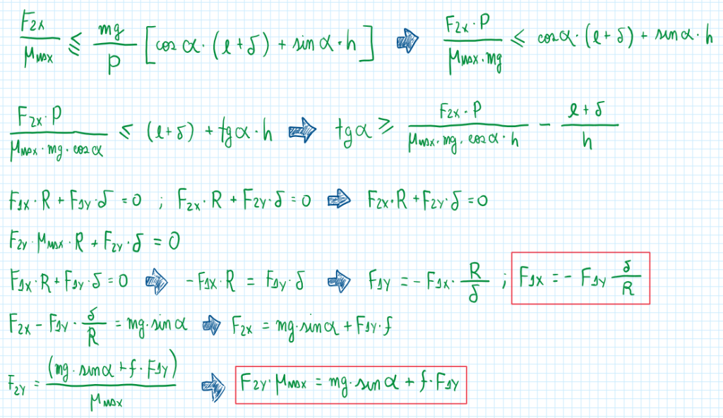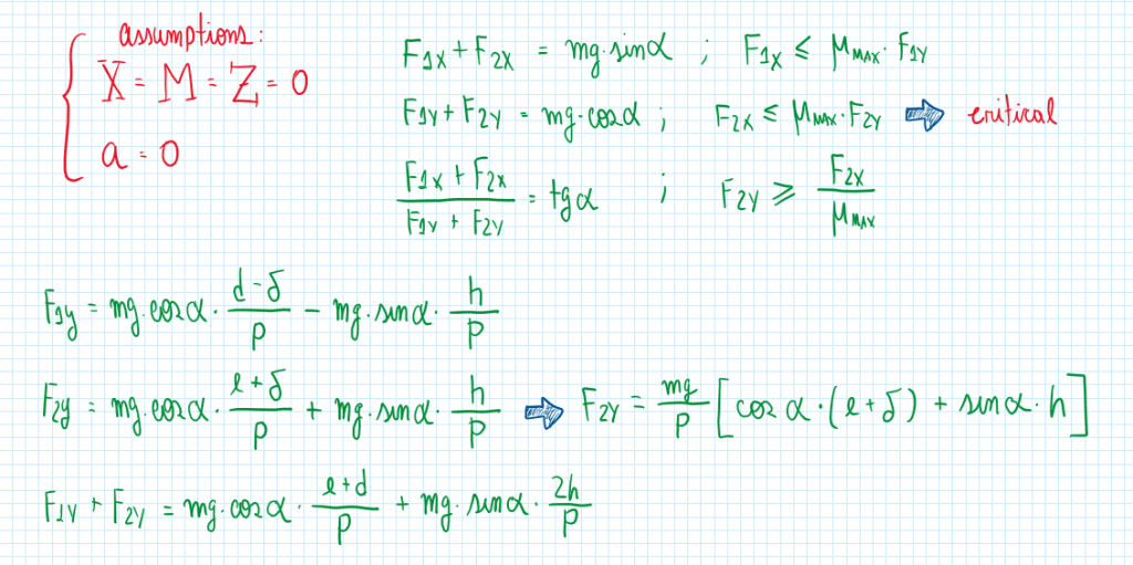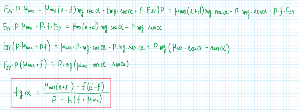 From these equations it is established a situation which a vehicle is traveling at low and constant speed, but the surface slope is the maximum value that the vehicle can overcome. Therefore the assumptions and equations are:
