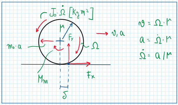 Hence considering a tractive wheel, the equilibrium equations are: