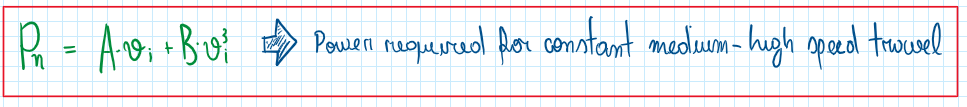 By observing this equation, a vehicle is able to travel at constant speed if it overcomes all the loads due to weight and rolling resistance. This one increases with speed but owing to their low values, only become significant for a constant speed cases. For high velocities it is usually neglected. The parameter K is not so significant in terms of absolute values, but being part of CiV5 make them a considerable variable for very high speed traveling conditions. Therefore the equation for power required by constant speed traveling is given by: