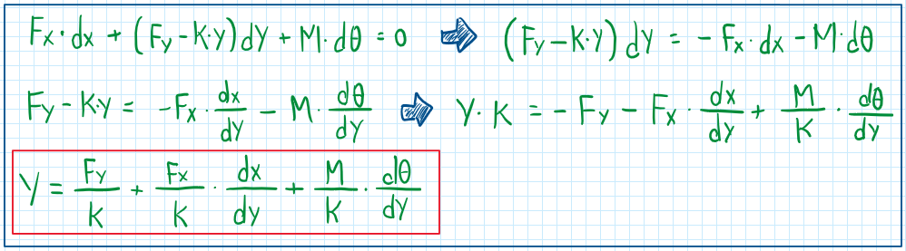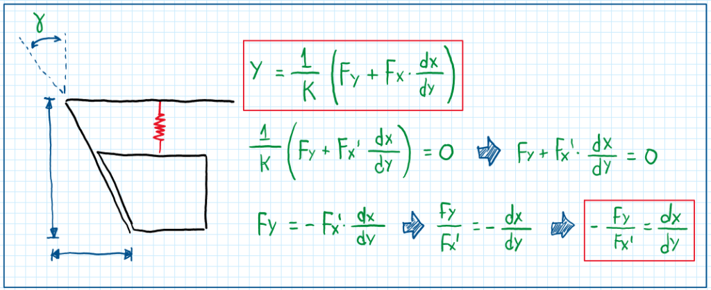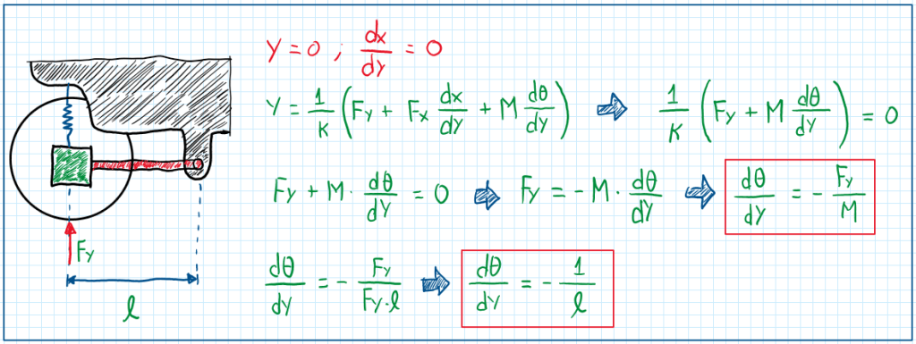 The first equation is well represented by the prismatic joint used in the hub design. With some manipulations of this equation it is possible to obtain a final relation between the ratio of forces and the the ratio of the derivatives. Hence the Y displacement is reduced in order to obtain the following relation: