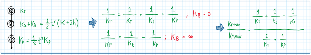 Hence Krmax / Krmin is the correlation between the extreme conditions of an anti-roll bar. It allows to evaluate the effects of the chassis stiffness Kt. Now the modifications will be applied on the Kt value inside the Krmax/Krmin ratio. Considering the Kt a very high value, in other words, infinite: