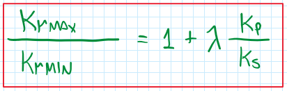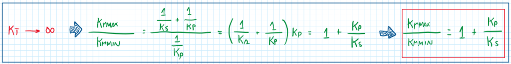 This relation is obtained for conditions of Kt tending to infinite and Kb = 0 or Kb tending to infinite. In fact this is a correlation of what happens when the chassis is extremely stiff, because in general the Kp (tire stiffness) is higher than Ks (suspension stiffness) alone. This means that Krmax / Krmin ratio has positive and large values. In terms of effectiveness of the chassis, a Kt tending to infinite increase the anti-roll bar effect. Therefore, as high the chassis stiffness is, more effective will be the anti-roll bars influence, which means more opportunity to tune vehicle dynamics. When Kt tends to 0, the Krmax / Krmin ratio tends to 1, which means that the anti-roll bars completely lost the effect. Therefore, the correlation developed above is a very important toll to evaluate anti-roll bar effectiveness. Hence, to be more easy to manipulate it is interesting to write it in the following form: