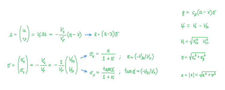 As can be seen, in this case, the longitudinal slip k and the slip angle α are so small, that the longitudinal and the lateral deflection are reduced to the difference between a and x times the slip parameter respective to these movements, σχ or σy.