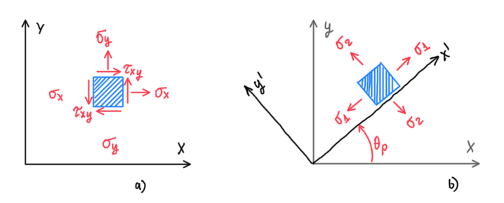 Hence, it us accounted both positive and negative stresses. Finally, the principal stresses for two dimensional analysis can be given by: