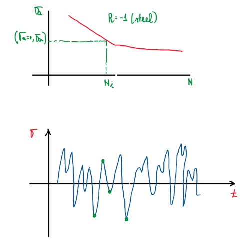 One of the cycle counting techniques adopted is the Rainflow approach. By this one it is possible to identify which is the mean stress component σm and the local stress σa. Since the material is usually knon, the ultimate tensile strength Rm is given and by the Haigh equation it is possible calculate the safety factor. In addition, the Rainflow approach also allows to calculate the damage accumulation of the component. This and Raiflow technique will be discussed in the next topics.