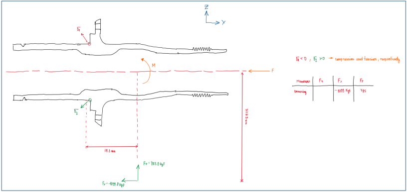 As can be seen, it is possible to evaluate the damage accumulated in the upright due to the moment generated by those forces. Hence, it applied the process explained previously.