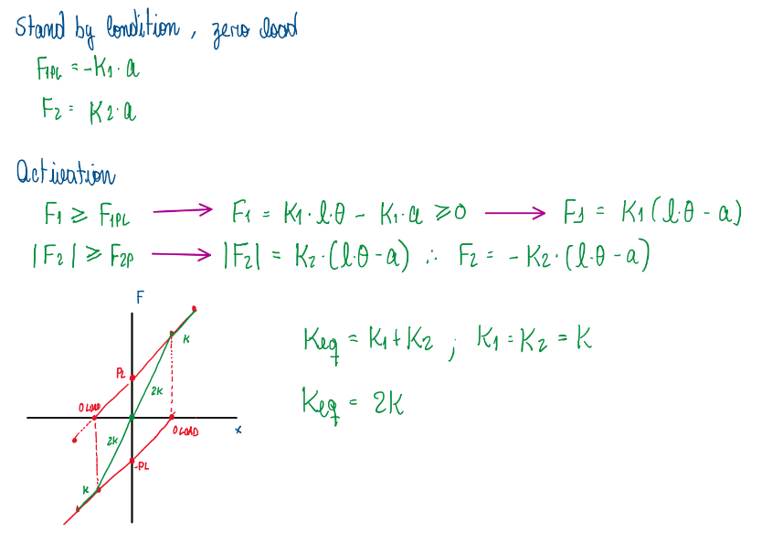 Figure 15 illustrates ths second case. This condition provides a proportional variation of the equivalent stiffness. The springs are acting in some area of the second and forth quadrant due to the pre-load.