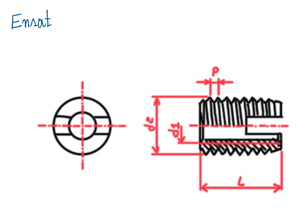 These are a variation of the ensat for any fastening technique which uses an insert mean of fixture. It is mainly used in soft materials as carbon or magnesium. At the region of the hat, dents are machined to deform the main material when applied on it. They also avoid the rotation of the insert during bolt fastening. This kind of insert is used, because in soft materials it is common to occurs problems with tread wearing. The bolts adopted are usually made by steel which is stiffer than the material of the component to be supported. As a result, the constant fastening and unfastening wear the tread. For this reason, the inserts are made by steel. The kobsert requires similar inner diameter as ensats, thus they are big and this should be considered in the package. Kobserts (Figure 5) inserts are usually applied in gearbox casings and suspension pick-up points.
