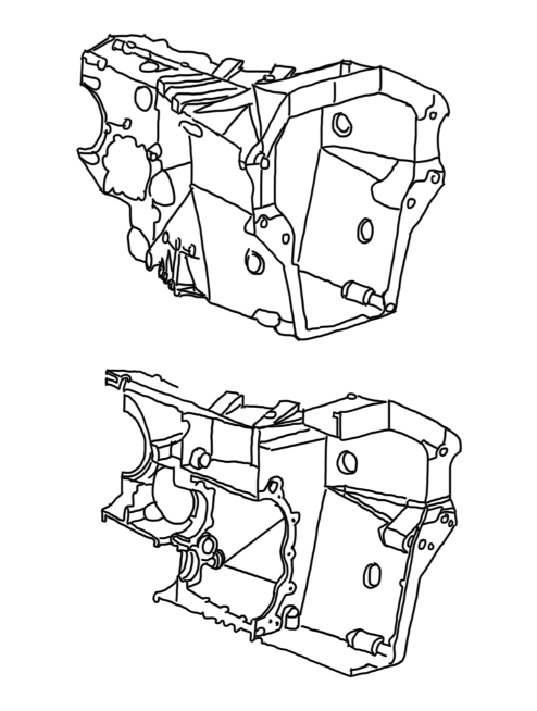 The Figures 10 and 11 illustrate an example made by sand casting, finished by CNC machining and applied for a high level race car. The material is aluminum due to its good castability and formability. This casting process has two sand molds which has the negative parts which are the half of the gearbox casing vertically split. These are made by resin negative pattern which pressed against the sand by huge pressing machines.