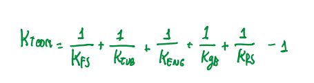 Figure 7 illustrates that in an open wheel race car the chassis torsional stiffness is given by the stiffnesses of monocoque Ktub, the suspension arm Kfs and Krs, the engine Keng and the gearbox Kgb. It is possible to admit that the suspension arms are the most flexible components and the engine is the stiffest one, because it is short. Hence, a great improvement in Ktub may not result in noticeable in improvement in the total stiffness of the chassis, Kt.