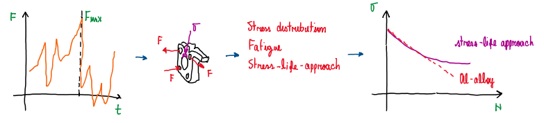 Hence, there are situations which the plastic behavior of the material define the kind of approach adopted. In general, misuse loads are always taken into consideration with the strain life approach, because it is important to identify the material behavior when the material reach the plastic condition.