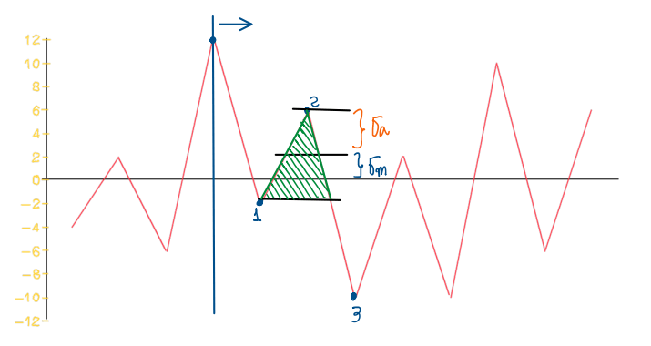 How to determine the amount of cycles present in this piece of loading history at Figure 12? In fact, with a constant load case, the mean stress can be give by: