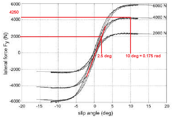 ym = -4250 N ; D = µ×Fz ; µ = -4250/4000 = 1.063
