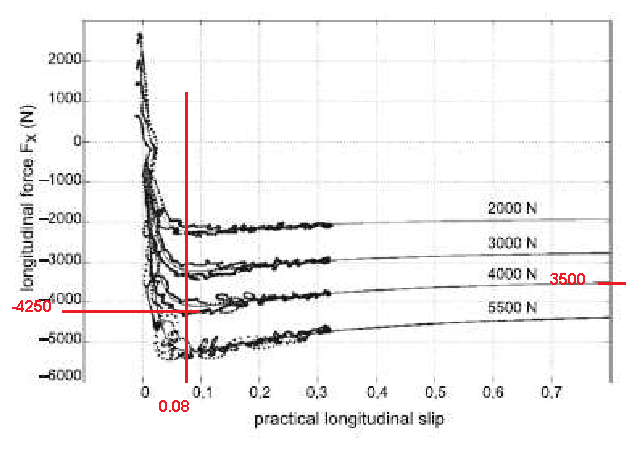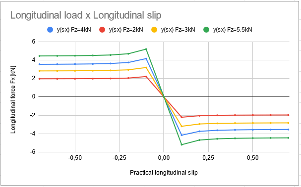 All the examples given in the previous paragraphs refer to situation of lateral loads, but the magic formula can also be applied to longitudinal loads. Figure 17 illustrates a curve of pure longitudinal slip in braking case and the same method applied previously will be adopted here.