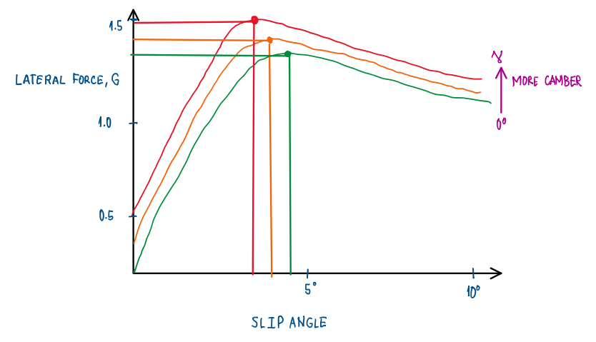 Figure 13 illustrates that the camber angle γ can result in higher lateral G and with this coming at slightly lower α.