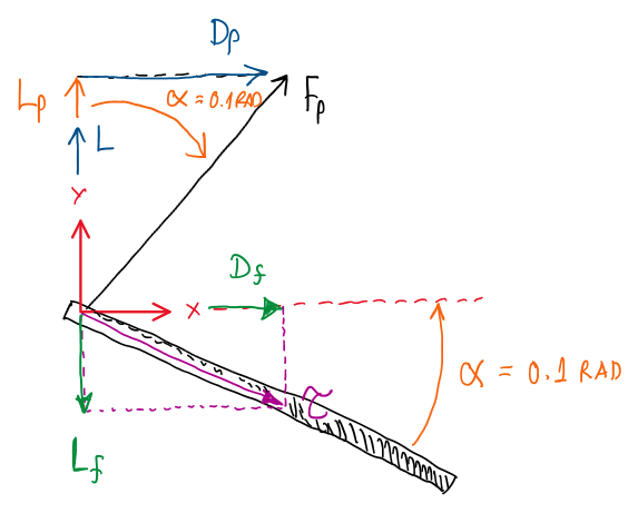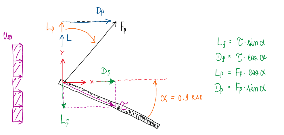 This calculation is important to understand the components produced by a wing or a flat plate. These are described below: