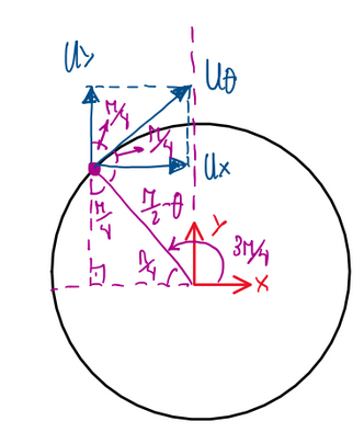 Ux = Uθ∙cos(π/4) = – 6√2∙(√2/2) = – 6 m/s