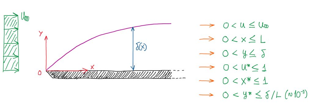u* ~ 1 ; x* ~1 → ∂u*/∂x* ~ 1 ; y* ~ 10-3