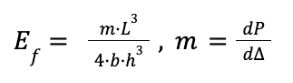 Where m is the load variation with respect to the shear deformability. This approach is only valid for slender beams, because otherwise the shear deflection will affect the test results. Actually, most of them are not perfectly slender beams, thus there is another equation for the shear deformability. This is given by:
