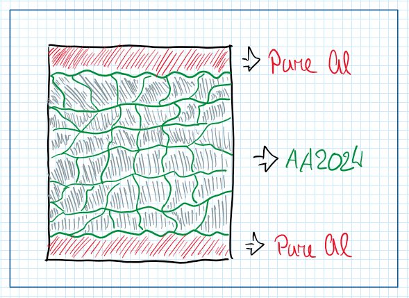 The main problem with the 2024 aluminum alloys is the intergranular corrosion. To avoid this phenomena they are usually developed in a sandwich structure. This is a strategy which the structure composed by 2024 aluminum alloy sandwiched by layers of pure aluminum. The objective is to avoid intergranular corrosion, because even though there is a different potential between the layers, the pure aluminum is exposed to the air and the other lawyer of it is exposed to the aluminum 2024 alloy. In this way the pure aluminum lawyer acts as a protection and reduces the intergranular corrosion.