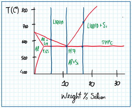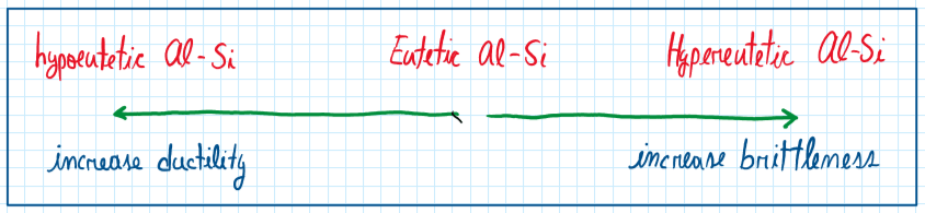 As can be seen the better aluminum alloys forecasting are alloyed with silicon. However, the amount of silicon aided must be controlled to avoid the microstructure coarsening. In general just 10% of silicon is enough to generate a composition around 12.7%. in this case, the structure produced is composed by large plates or needles of silicone. This structure is called hypeutetic and is characterized by a very high brittleness.