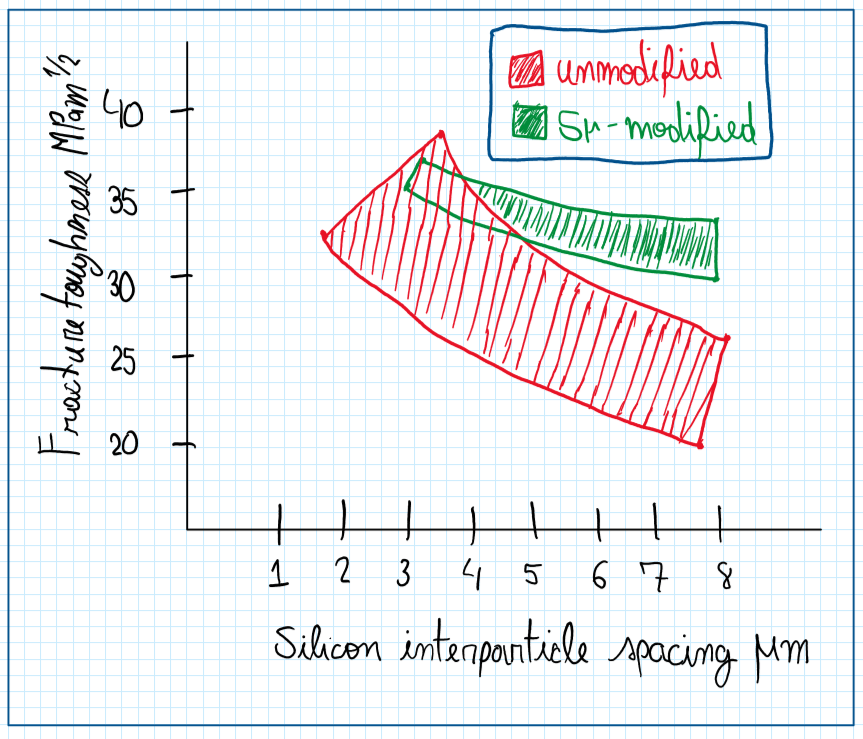 The use of strontium fluorides on aluminum silicon alloys improves the toughness if the size of the silicon particles increases. In other words, even with a not so fine structure, the mechanical properties are improved. In fact, a better grain refinement provides a higher tensile strength, elongation, hardness and fracture toughness. However casting aluminum alloys usually have lower mechanical properties relative to the wrought aluminum alloys. Hence the treatment with fluorides is a alternative process to obtain a better microstructure and an improved mechanical properties.
