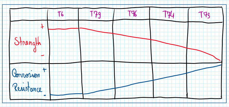 The main temper is the T3 and T8. However it is common the application of a slight plastic deformation ( 2 to 6% ) after quenching . This creates dislocations whose enhance the formation of precipitates during aging treatment.